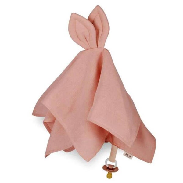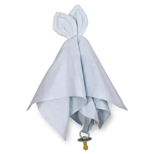Knuffeldoekje dat aan vele eisen voldoet ! Op het kleedje zijn twee lagen luierdoekjes genaaid, zodat je het snel kunt gebruiken om kwijl weg te wikkelen. Aan de bovenkant zijn twee zachte oren genaaid, waar de baby op kan bijten. Tot slot is het voorzien van een bandje waar je de fopspeen aan kunt bevestigen, zodat je altijd weet waar hij is.