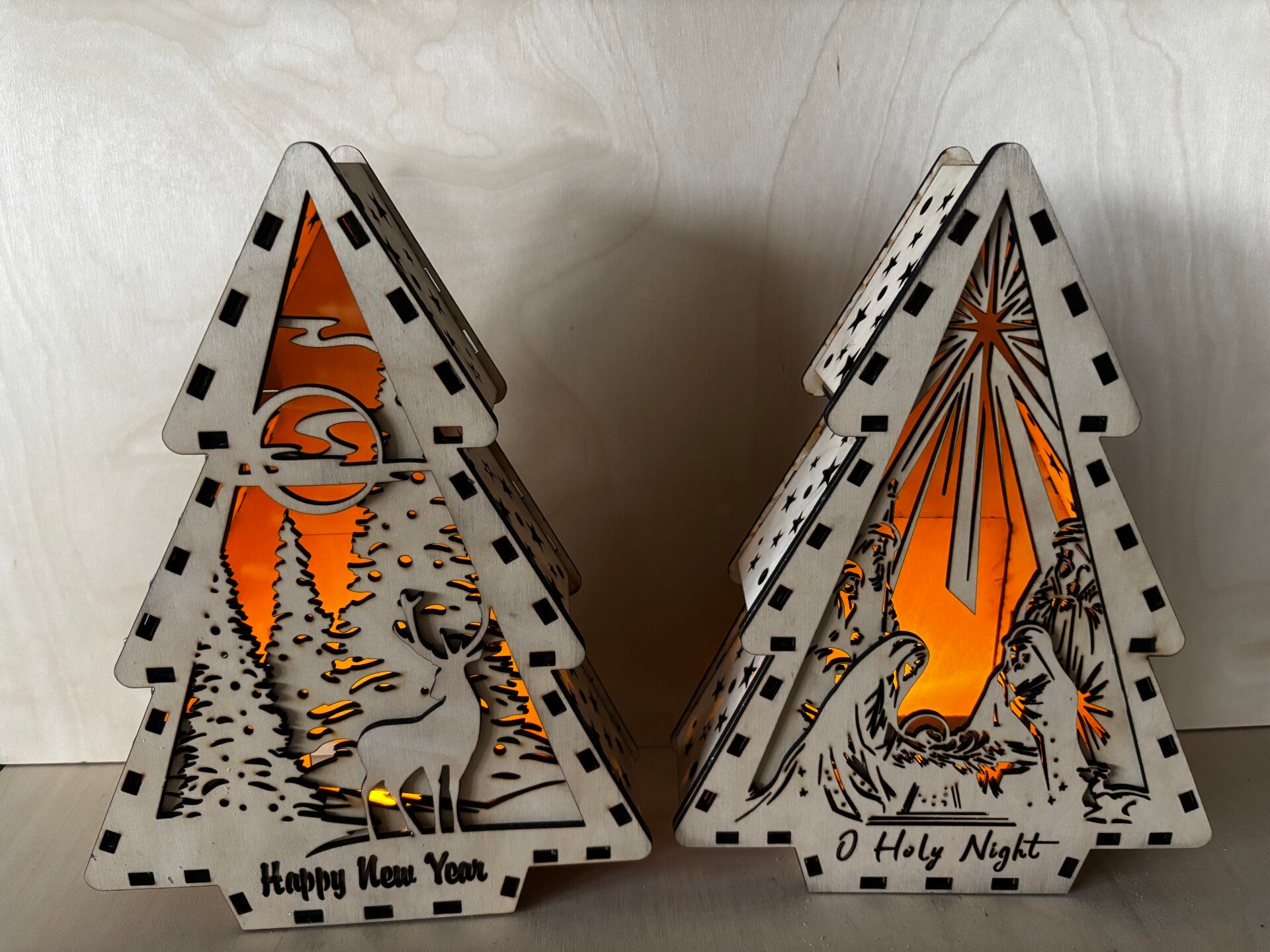 Elke boom is zorgvuldig uit hout gelaserd en voorzien van een sfeervol LED-kaarsje dat een zacht, warm licht verspreidt.
